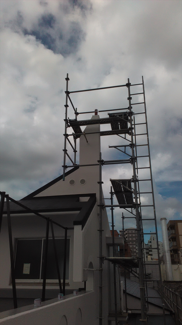 屋上防水、外壁塗装や意匠の変更、と境内の時計の撤去(間もなく十字架がつきます)。