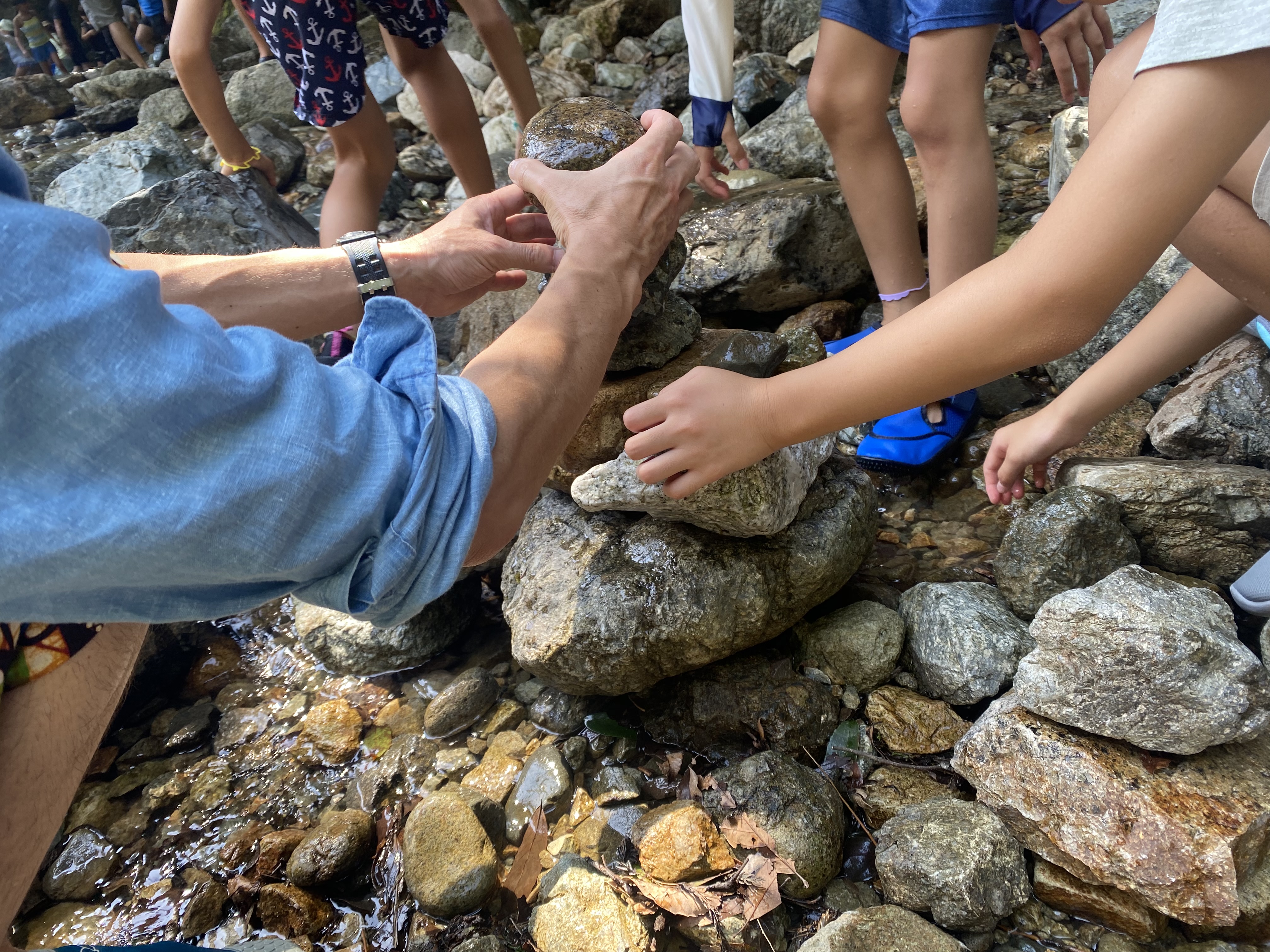 魚を探したり、石を積み上げたり、楽しく過ごしています♪