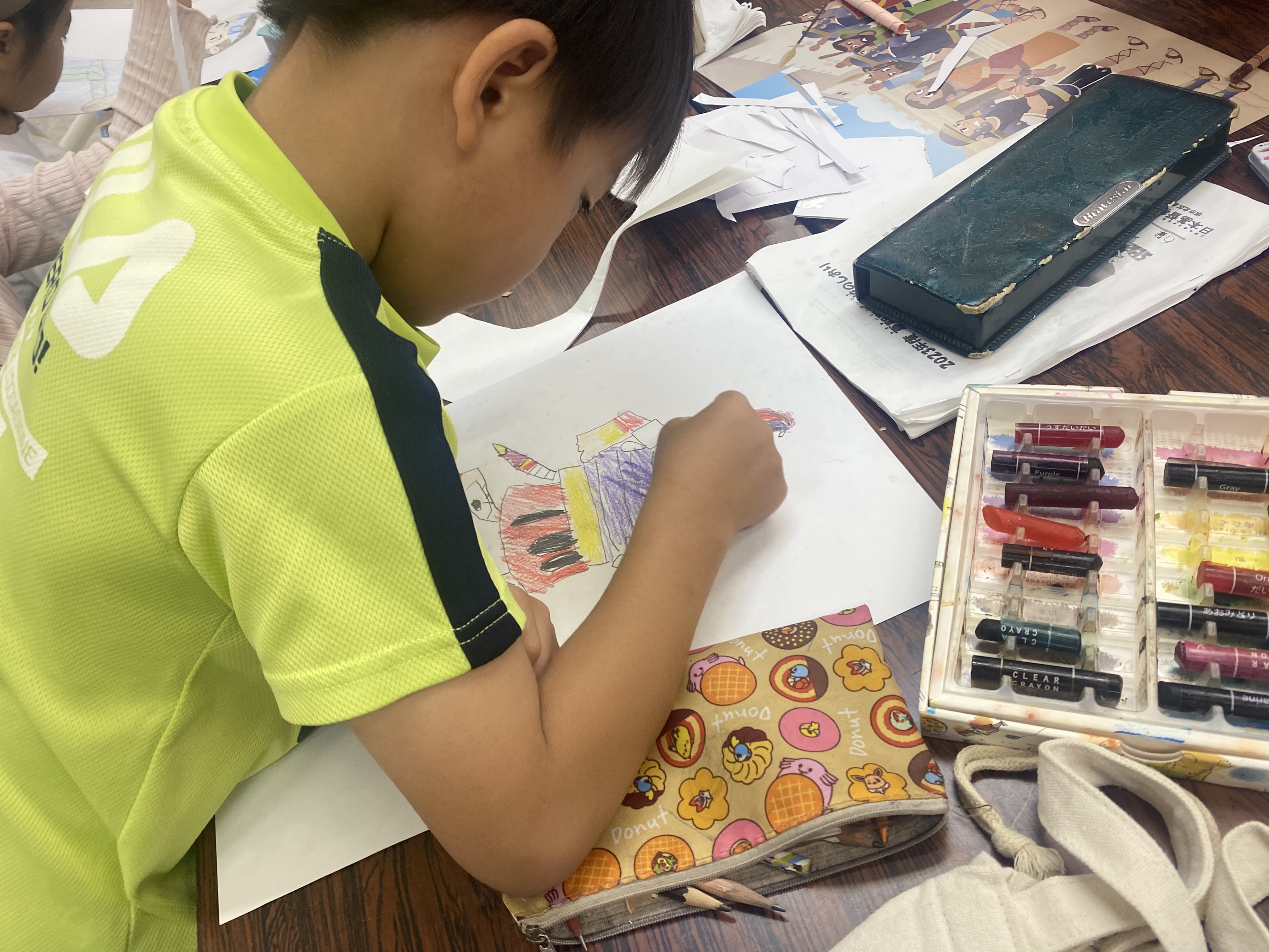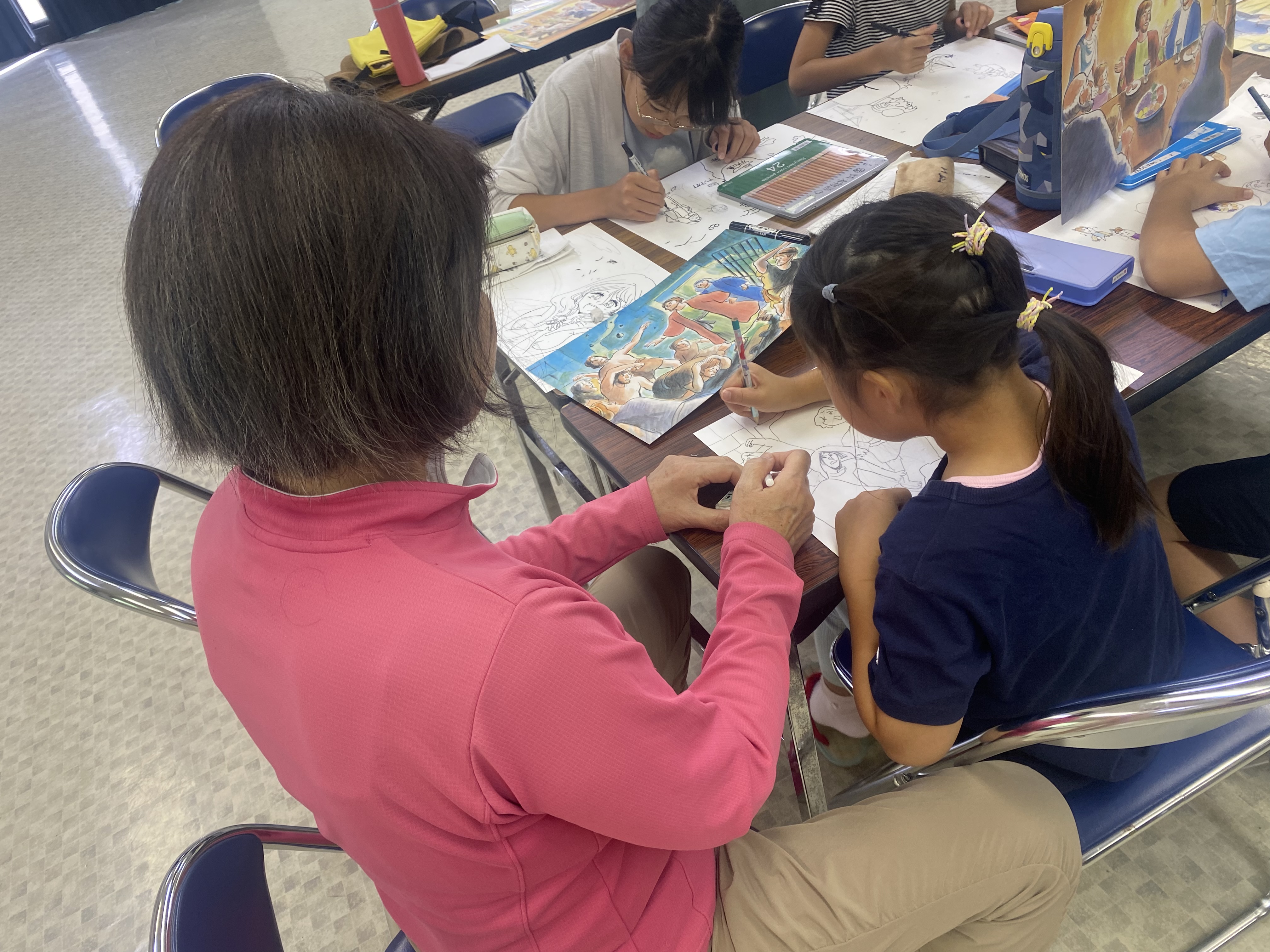 今は、分級をしています。紙芝居の色塗りやペープサート作りなど、みんなで協力しながら集中して取り組んでいます。