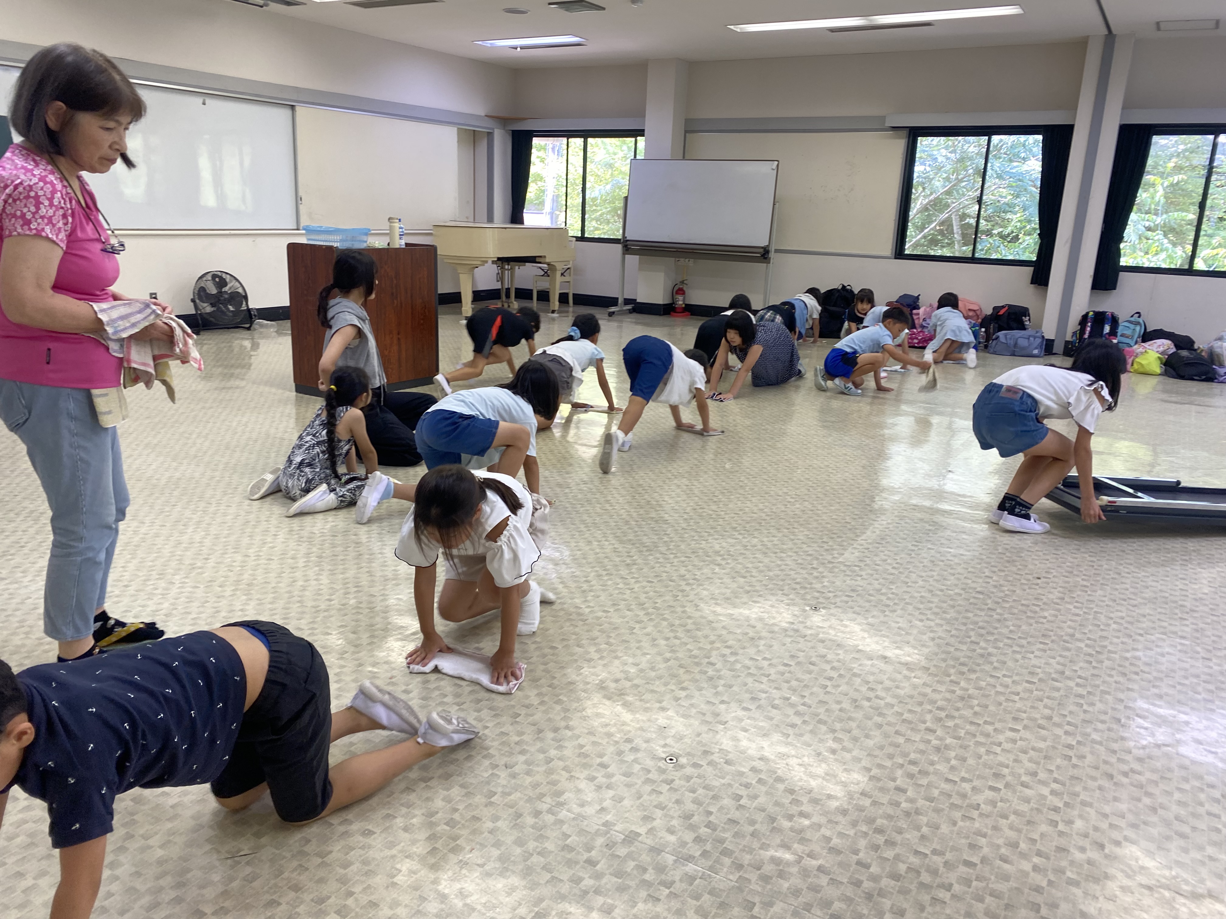 楽しかった夏期学校も終わりの時となりました。 閉校礼拝を捧げ、お世話になったホールをみんなで掃除しました。