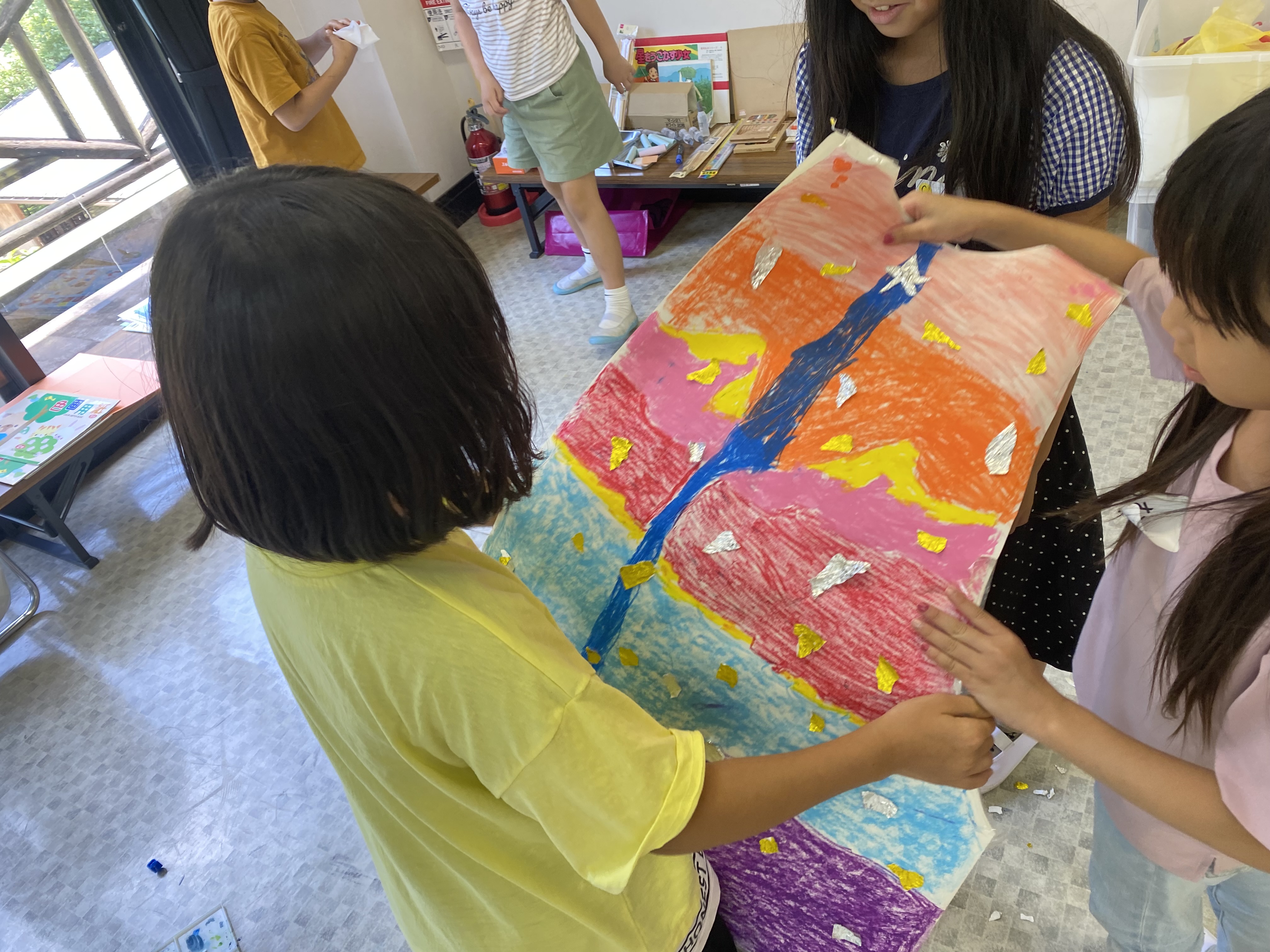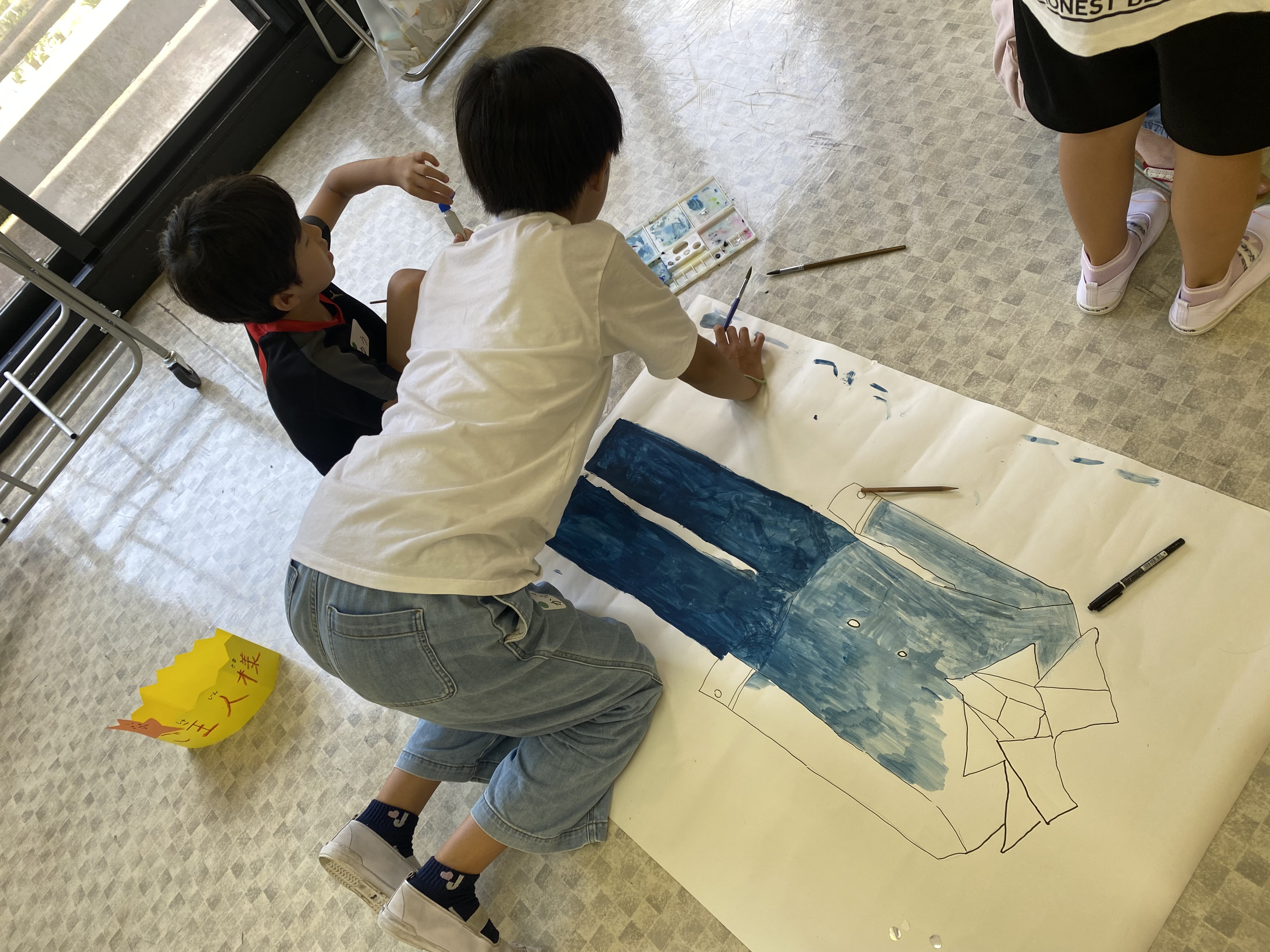 今年も画用紙や模造紙を使って絵を描いたり、新聞紙などを使って小道具を作ったり、グループごとに話し合って進めています。