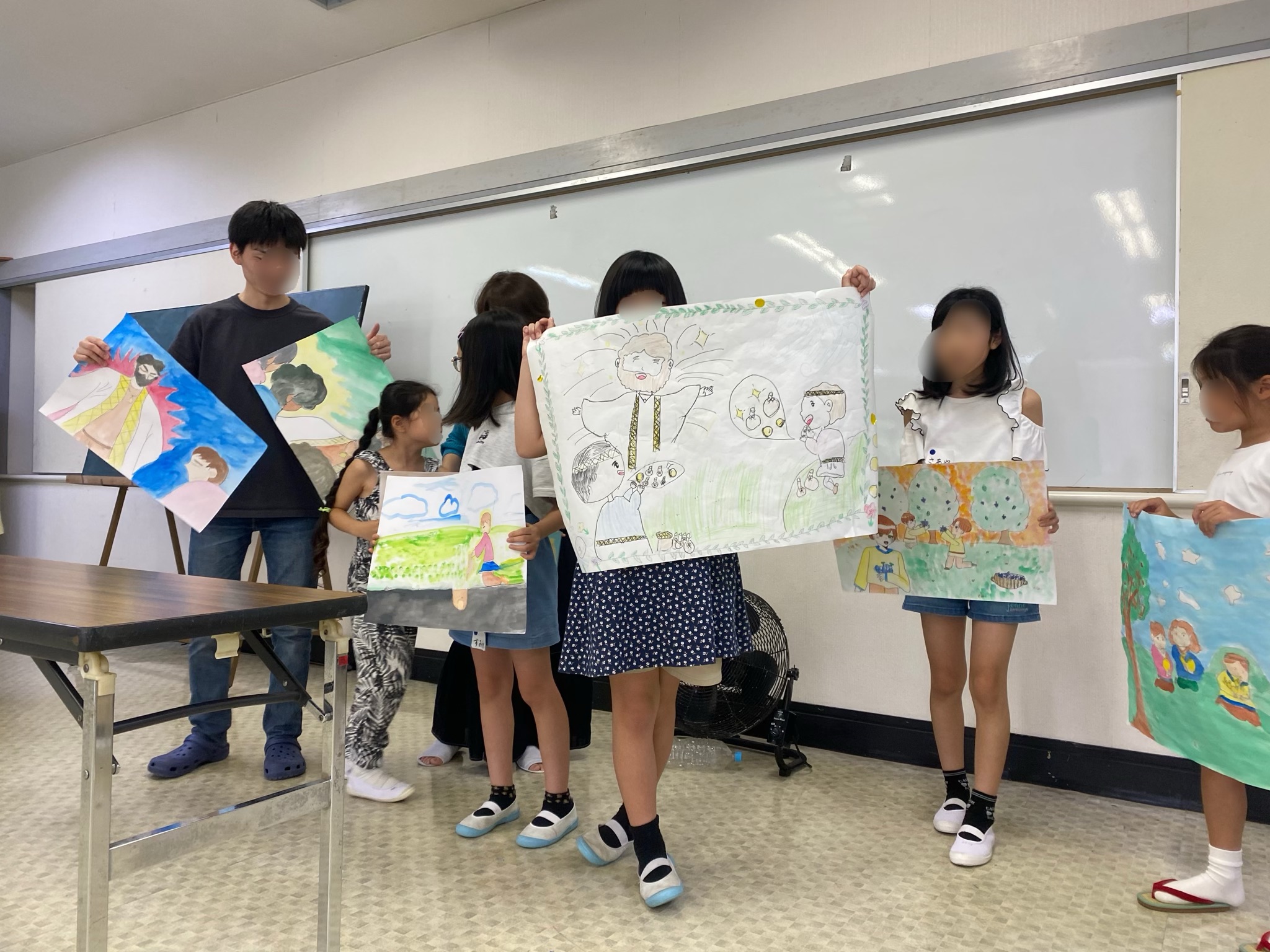 3日間の聖書の学びをみんなで発表します。 グループごとに協力して完成させた紙芝居や劇を行いました。