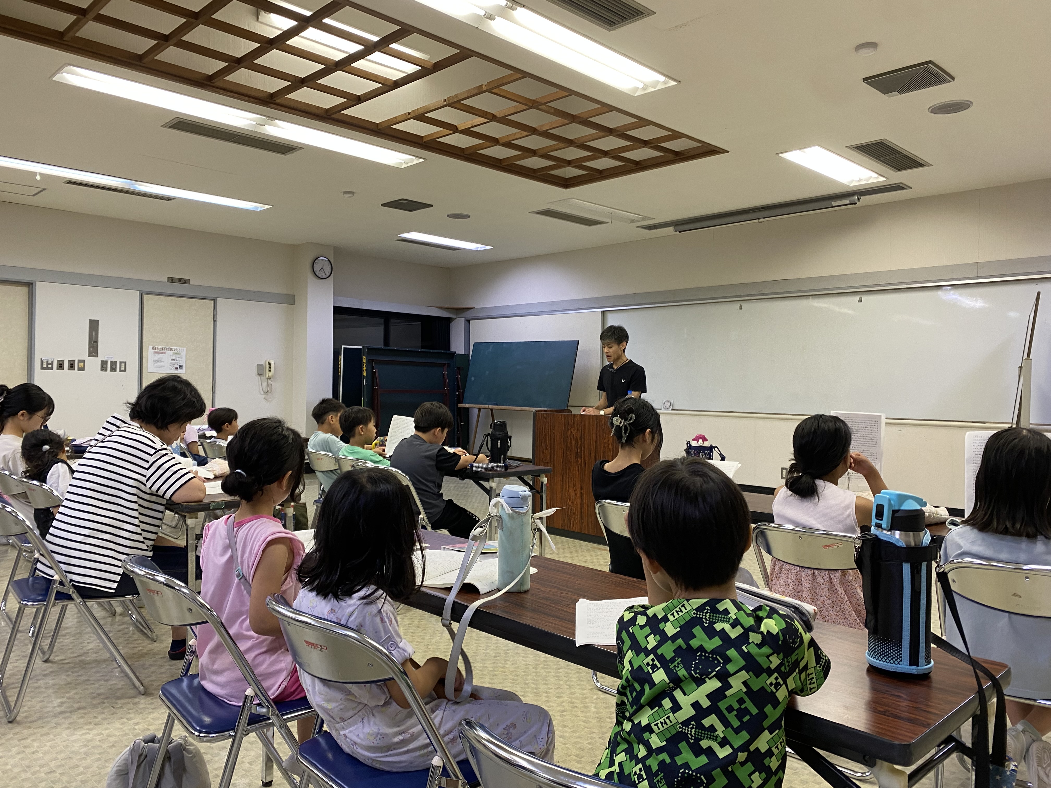 ご飯の後は主題講演です。 疲れている子どもたちでしたが、真剣に話を聞いていました。